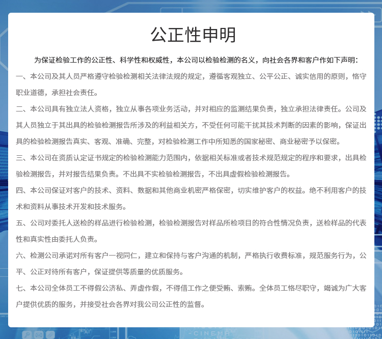 簽訂合同后,常規7個工作日內出具報告,可申請4個工作日及2個工作日出具報告客戶可以參與整個采樣和測試過程,可以申請對整個采樣和測試過程進行拍照,并提供照片免費提供技術咨詢。